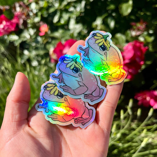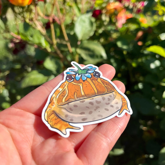 Vinyl "Tibby" the pacman frog with flower hat sticker