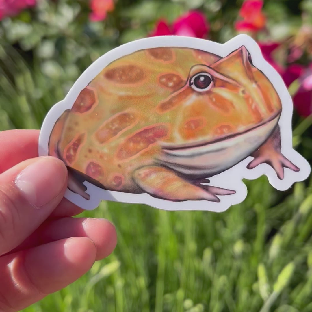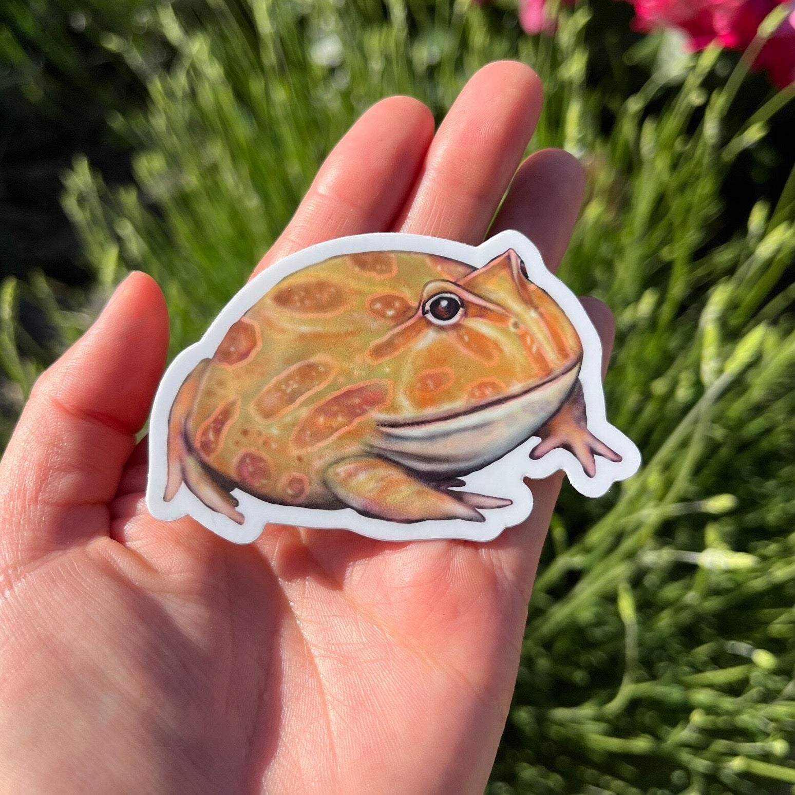 I love this sticker so much. I have such a love of frogs and my sister loves snails so this design reminds me of us. Great quality and was packaged nicely to prevent bending during shipping.